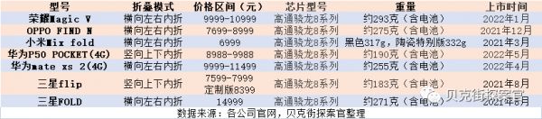 而采取横向折叠的三星FLOD系列,价格是2021年Q4之后发布的折叠屏手机中,价格最高的。12+512GB配置比华为同配置机型价格高2000元,华为对其形成一定价格优势。