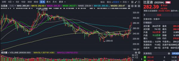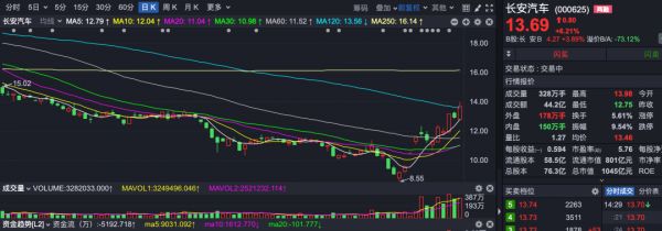 再看下游整车制造板块,长城汽车涨停,长安汽车、比亚迪、小康股份等集体大涨。尤其是比亚迪和长安汽车,近期表现非常强势。其中,长城汽车市值接近3000亿元,比亚迪更是8000亿元市值,这对整个市场人气的带动太大了。