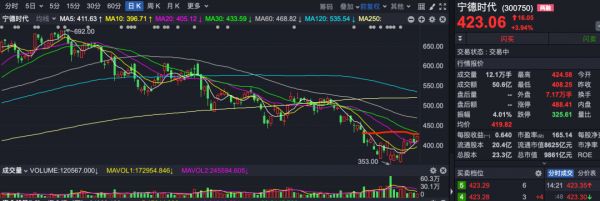 今天,宁德时代大涨超过4%,总市值接近9900亿了,距离万亿市值仅一步之遥。前不久的4月20日,宁德时代当时跌了7.55%,市值跌破万亿之后,经过近一个月的筑底反弹,终于可以把反弹目标初步定在万亿了。