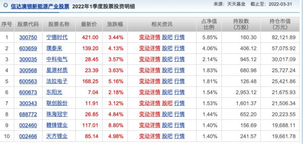 看一下信达澳银新能源的布局,依然重仓宁德时代和锂矿。