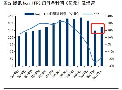 但利润端的表现则可能逊色不少,预计非国际财务准则下的归母净利润为273亿元,同比将减少18%左右。主要原因在于雇员的福利开支、内容成本以及无形资产摊销等具有一定刚性,不会因收入增速下滑而同比例减少。且联营公司也加大了各自投入,使得归母净利同比下滑。不过在公司开展降本增效措施之后,归母净利润环比2021Q4则可能有所提升,但明显低于去年前3季的表现。