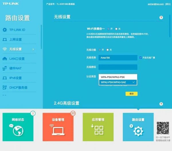 通常来说,目前新推出的 Wi-Fi AP(访问热点)设备的加密默认值都是 WPA2。如果你想检查你的 Wi-Fi 网络加密协议,需要前往你的 Wi-Fi AP 或无线路由器(以下简称「Wi-Fi 设备」)中修改或查看。这里以较新的 TP-LINK 路由器为例: