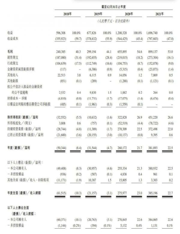 招股书显示,2018年至2021年,云康集团的收入分别约为5.96亿元、6.78亿元、12亿元和16.97亿元,同期净利润分别约为-6151.5万元、-2115.7万元、2.76亿元和3.85亿元。