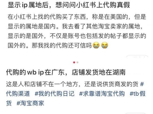 锌刻度发现,在小红书和微博上,不少代购在IP属地公开后都面临质疑。比如,“代购的微博IP在广东,店铺发货地在湖南。”“IP属地公开最大的收获是知道了我的韩国代购在山东。”等等。