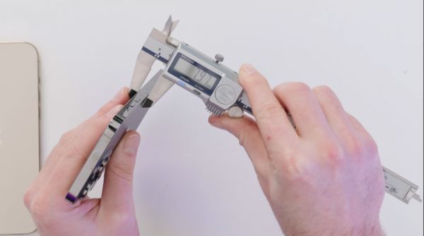 实际上手之后,主播很快就察觉到了两代产品之间的差异。这台iPhone14ProMax虽然只是一台模型机,但是上手手感明显更厚更重。在经过仔细测量后,我们可以确定iPhone 14 Pro Max的机身厚度达到了7.98毫米,而iPhone 13 Pro Max机身厚度只有7.77毫米,更轻薄的iPhone 12 Pro Max则为7.4毫米。