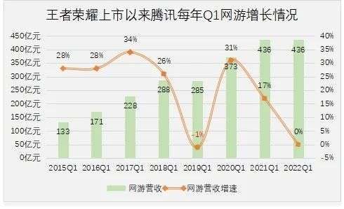 今年一季度版号并未重发,比较历年一季度情况可以看到在没有增量的情况下,腾讯在线游戏似乎正在走下神坛。截至一季度,腾讯游戏收入为436亿元,与去年Q1持平。