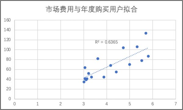我们将年度购买用户分别与自营入与平台及广告收入进行拟合,可以发现,在过去周期内,京东单个用户对收入的贡献虽偶有浮动,但整体上仍然围绕在拟合线周围,且R2之高也说明了总营收与用户规模关系之密切,也即要稳定营收大盘就还是要提高获客效率。