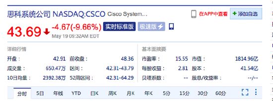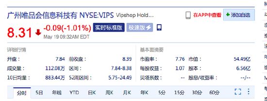 美股三大股指集体低开:思科跌近10% 唯品会跌超1%