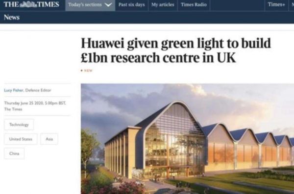 2020年,英国批准华为建立研发制造中心,投资规模达10亿英镑。图片来源: 网络截图