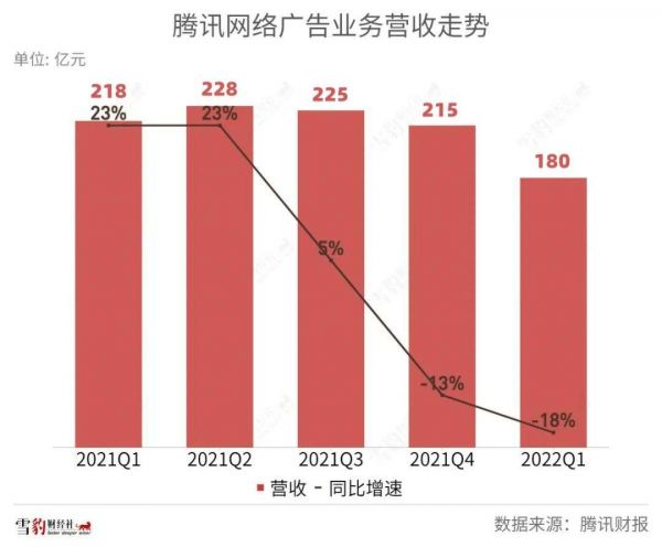 腾讯将广告业务营收欠佳归咎于教育、互联网服务及电商等行业的广告需求疲软,以及网络广告行业自身的监管变化的影响,而且这一影响还将持续。“2022年第二季至今,广告市场持续低迷,快速消费品、电子商务及旅游等行业的广告主大幅缩减广告支出。”财报称。
