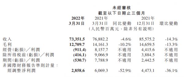 Q1经调整净利润为28.59亿元,同比下降52.9%;