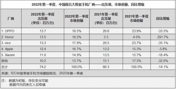 2022Q1中国手机市场