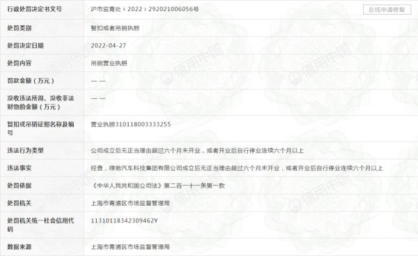前不久,一则行政处罚让沉寂许久的绿驰汽车重新回归大众视野,主要内容是绿驰汽车无正当理由超过六个月未开业,公司登记机关吊销其营业执照。
