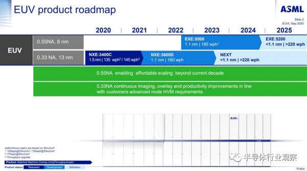 从ASML 透露的消息可以看出,ASML正在开发下一代 EUV 平台,将数值孔径 (NA) 从 0.33 增加到 0.55,可以支持多个未来节点。