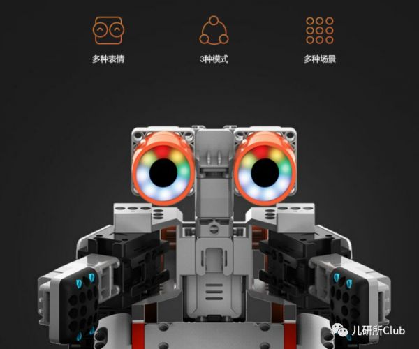 以星际探险系列为例,该系列设置了三个形态,分别是星际远征军第十七小分队的星宝、路宝和探星1号,探险1号的设定是“智慧与力量的集合,能力非凡”;路宝的设定是“稳重老实,经常被调侃,但勇敢正义”;星宝是“机灵活泼,心机boy,充满智慧”。通过其多块积木零件,用户还可以自由组合成不同模型。该系列还设置了8颗灯珠9个色块,可以自由定义表情和颜色,还有表情、情景灯、自定义灯光模式。可自行设置红绿灯、车灯、表情等。