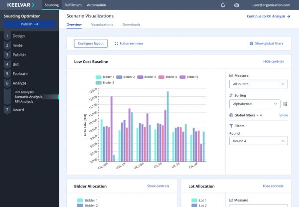 用户从多个供应商那里收集一系列直接或间接的采购投标信息后,「Keelvar」将根据这些标准和其他约束条件分析这些方案。平台将借助算法对供应链中断的可能性进行排序,并相应地提供建议。