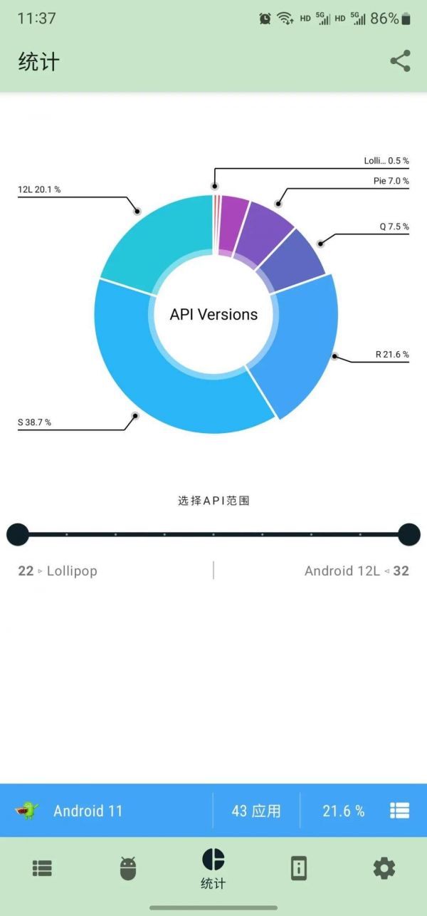 API 级别 32 只可能对应 Android 12L,Android 12L 的 API 级别也只能是 32。对于市面上运行系统版本千差万别的 Android 设备而言(你同样可以在上面那个网站中看到不同 Android 版本的累计用户占比),API 级别也成为了开发者辨别用户系统版本和应用运行环境、保证应用兼容性的重要参考。