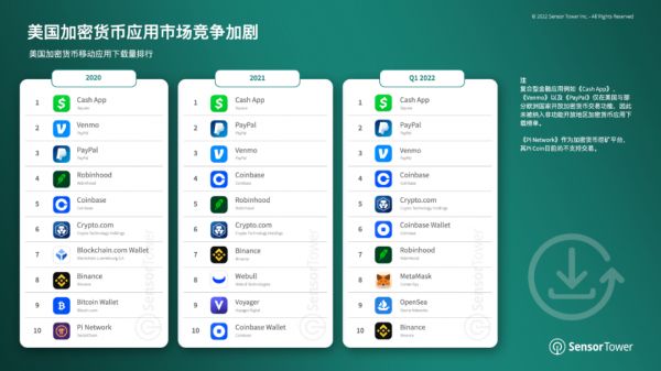 2022年金融与加密货币应用热门市场洞察: Q1全球金融应用下载量为17.4亿,其中加密货币应用超过1亿