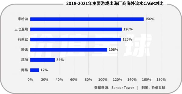 Sensor tower最新数据显示,2021年,若不考虑Supercell对腾讯的贡献,网易自主发行手游于海外市场所获取的净收入位列全国第六;更为重要的是,2018-2021年,网易手游出海收入CAGR是前6大厂商中最低的。