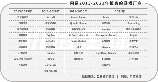 其次,网易近年来还加大了对海外游戏团队的投资。