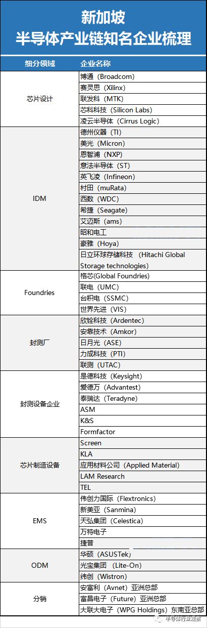 可见,1990年代,除特许半导体、UTAC之外,新加坡的半导体企业绝大多数是外资公司,这些企业将芯片设计、制造、封测等相关技术引入新加坡。