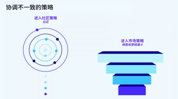 相比之下,完全通过“进入市场”活动捕获价值的做法则忽视了那些可能会以不同方式接触到你的品牌的人。这种不一致的情况,通常都是“进入社区”和“进入市场”团队的目标不明确所致,进而造成相关活动与预期影响不匹配这一结果。