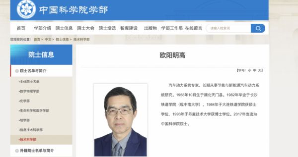 2017年,欧阳明高教授当选中国科学院院士。此后,60多岁的欧阳明高院士常常活跃在科研工作一线。从汽车电动化、能源低碳化、能源车发展终极能源……一直围绕着新能源汽车产业。用欧阳明高教授的话来说,这辈子没有一刻离开过汽车的动力系统领域。