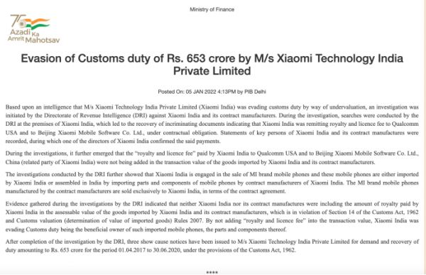 就拿海外市场表现非常不错的小米来说,今年 1 月就被印度财政部以逃税的理由,追缴 65.3 亿印度卢比(约 5.58 亿元人民币)税款。