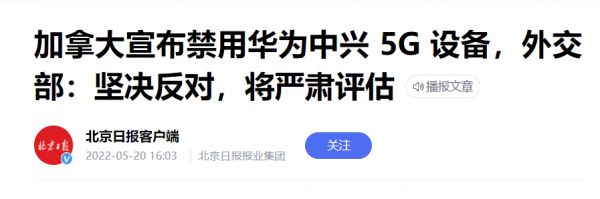 这件事我相信大家也不陌生,那就是加拿大宣布禁止华为、中兴参与 5G 建设!