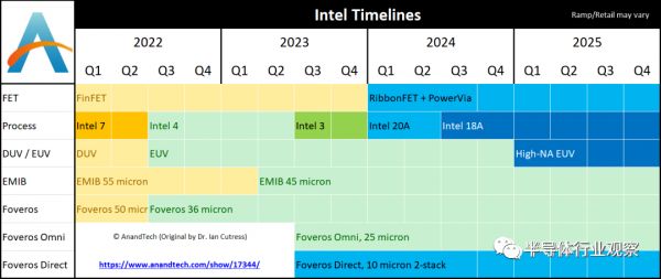 而关于先进工艺技术,英特尔在去年7月公布的制程工艺和封装技术路线图中明确表示,计划于2024年发布“20A”(相当于我们说的2nm)工艺,正式进入埃米时代。可能觉得这个消息还不够劲爆,到了今年年初又来了一剂猛料,由ASML在公司公告中宣布英特尔是新一代NA 0.55首台光刻机的用户。