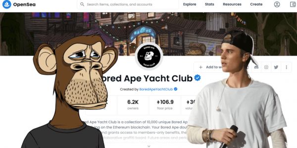 贾斯汀·比伯今年花130万美元天价买的无聊猿NFT