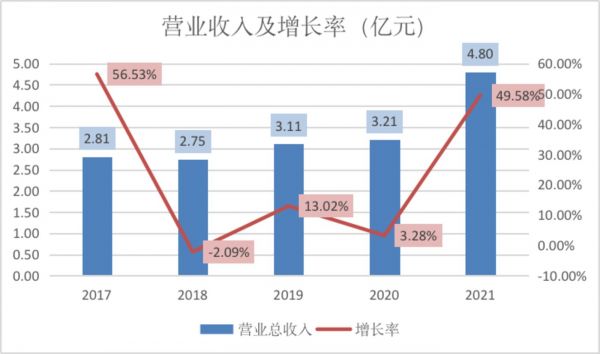 2021年公司营收大幅增长,然而利润增速却没有跟上,原因除毛利率较2020年的47.82%下降3.21个百分点至44.61%外,还有管理费用和研发费用的大幅上涨。