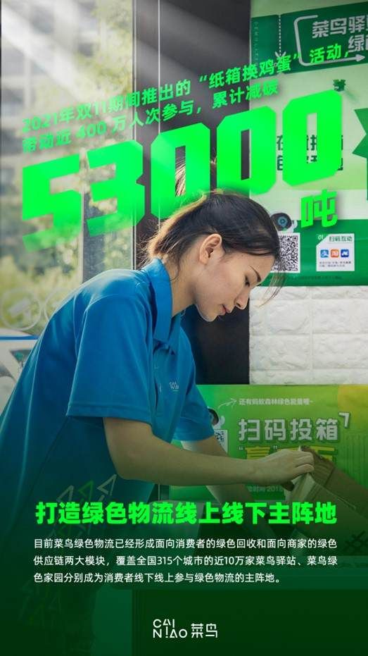 最前线 | 菜鸟发布ESG报告,2021双十一减碳5.3 万吨