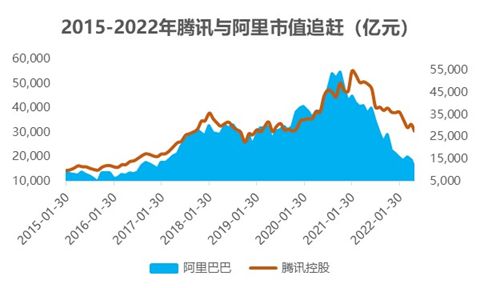 不过,随着人口红利的消退,这些互联网企业的光彩不像从前一般耀眼。用户数量、GMV、营收以及利润等指标,都在暗示这个行业的快速增长期已经过去。加之外部生存环境的一些变化,包括美元流动性问题的干扰,几大互联网公司的市值出现了巨大的波动。阿里巴巴的总市值从2021年初至今跌去60%,腾讯跌幅超过30%,美团网跌超40%。