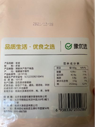 以美团买菜上一款食材虾皮为例,宝宝爱吃为经销商,而实际的生产、分装则是福建大海食品有限公司,最终产品经由美团买菜平台销售。
