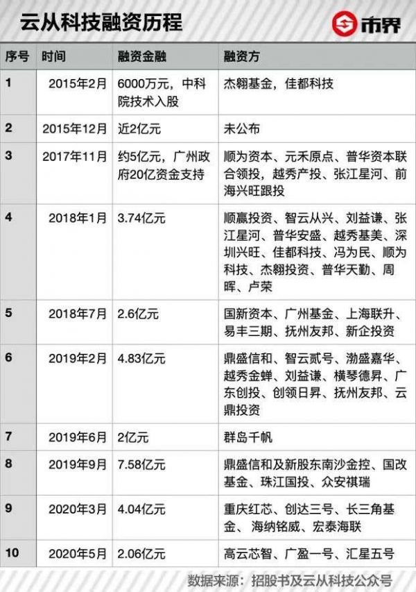 据市界统计,2015年成立以来至2020年启动上市前,云从科技共计进行了10次融资。融资方不乏顺为资本、元禾原点等明星机构,投资“大佬”刘益谦也在2018年的增资中进入。