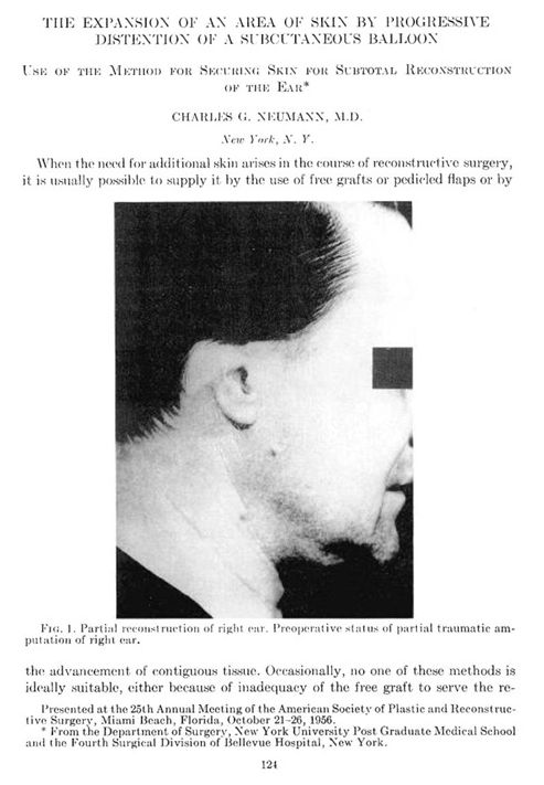 但 Neumann 在当时的文章中写道,他认为只有在没有其他方法可供选择时,才需要考虑皮肤软组织扩张术。而在文章发表后,他也没有对这项技术继续进行研究。