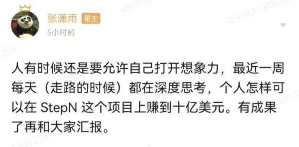对冲基金管理人张潇雨则最近每天走路都在思考“个人怎样可以在StepN这个项目上赚到十亿美元”。似乎越来越多的传统投资人都在将眼光放在以StepN为代表的Web3市场。