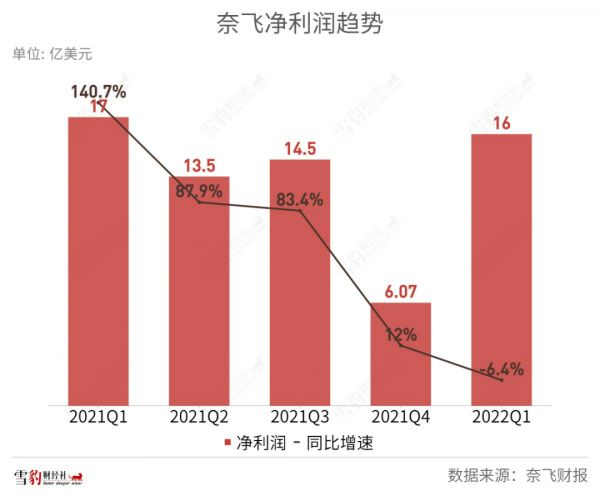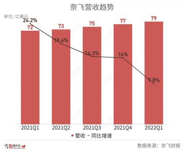 奈飞一季度净利润下降6.4%至15.97亿美元,是5个季度以来的首次负增长;营收同比增长9.8%至79亿美元,相较去年同期的24.2%明显放缓。奈飞预计下季度也将保持9%的较低增速。