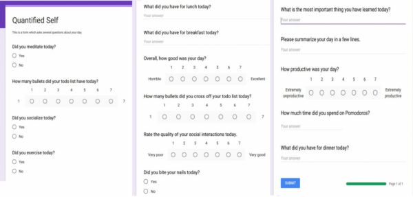 在我们看来,最值得养成的一个良好习惯,就是每天晚上反思这一天发生的事情以及自己的行为。为此,我还专门设计了一个问卷来帮助自己做好自我反思。具体而言,这份问卷里包括一日三餐吃了什么、社交互动质量、今天学到的最重要内容等问题。