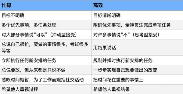 忙碌和高效的区别将是本文的核心内容。通过下表,你可以对比了解这两种状态的具体区别: