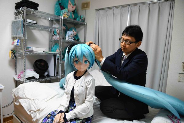近藤明彦说,在初音未来身上,他感到了爱、灵感和慰藉。他和他的初音未来玩偶一起吃饭、睡觉和看电影。他们还会时不时来一场浪漫之旅,并在 Instagram 上发照片。