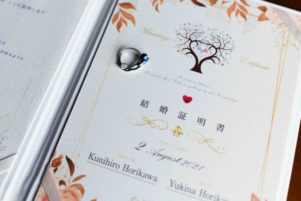 渡边康明与虚拟人物的非官方结婚证|图片来自《纽约时报》|摄影 Noriko Hayashi