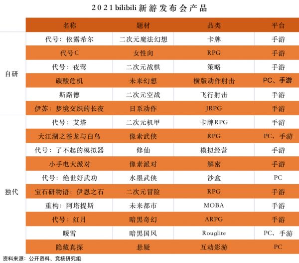 2021年8月B站新品发布会上,公司一口气公布了16款新作,包括6款自研。陈睿也表示,游戏自研是公司重点,预测在几年以后,游戏业务一半收入来自自研产品。