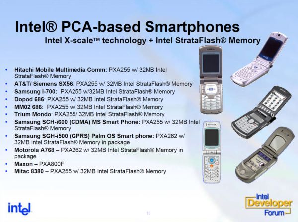 面向未来智能手机领域也已做足功课,早在 2003 年的 PXA800F 处理器上,英特尔就已经把计算、通信、存储集成到了一块芯片上。这在当时属于行业首创,与我们今天的高集成度手机 SoC 颇为相似。