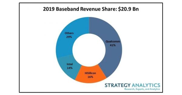 搭上苹果的快车,英特尔基带在 2019 年达到巅峰,市场份额达到 14%,跻身世界前三,仅次于高通与华为海思。