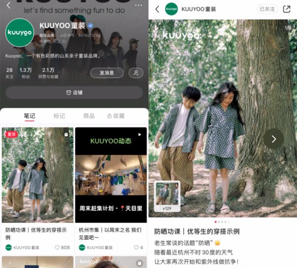 山系亲子童装品牌KUUYOO,在品牌成立之初就进驻了小红书。