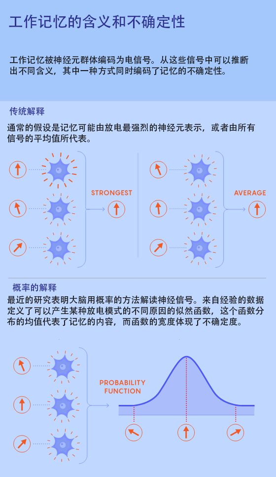 这些观察到的活动模式可能意味着,大脑使用相同神经元群体编码对某个角度的记忆的对该记忆的置信度,而非将不确定性信息分别存储在不同的脑区中。“这是一种有效的机制。”柯蒂斯说。“这真的很了不起,因为它们被共同编码在一起。”