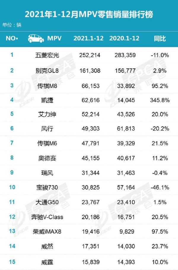 但这一款车型在2021年的销量仅增长了2.9%,是MPV市场在2021年显得“动荡”的一个缩影。