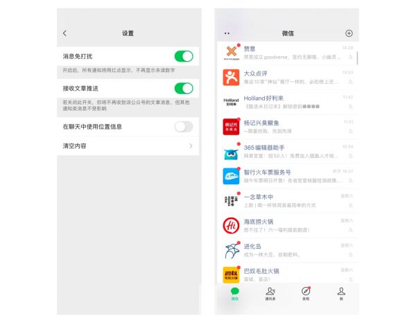 用户可一键关闭所有服务号消息提醒,无需手动消除,这 改变了服务号作为品牌主宣传阵地的定位。